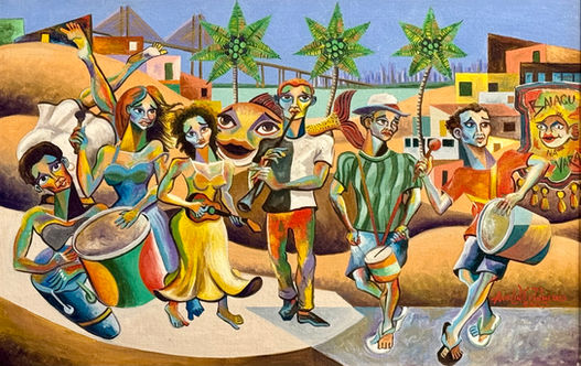 O artista trabalha com uma figuração expressiva, de cores intensas e desenho consciente, aproximando-se de um expressionismo lírico que se comunica diretamente com o imaginário coletivo. Elementos da vida simples — o pescador, o músico, o circo, a festa — são transformados em metáforas visuais sobre pertencimento, memória e existência.